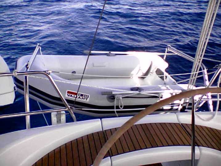 Das Dingi ist bereits fachmännisch an Davids montiert und geniesst gelegentliche Ausfahrten an Land von wunderschönen Ankerbuchten aus: