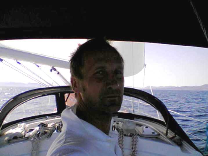 Skipper Urs versucht konzentriert zu fotografieren und den Schmetterling - Kurs zu halten, was man am ernsten Gesichtsausdruck unschwer erkennen kann: