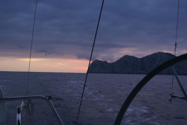 Am Starttag nach Umrundung des Cap Formentor beginnt die Sonne aufzugehen: